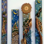 La sua arte rispecchia totalmente la sua filosofia di vita: cercare la bellezza sotto la superficie, usare per fini artistici materiali di recupero che recano in sé la bellezza dell’oggetto che furono, abbinati con elementi provenienti dalla natura: gli ultimi frammenti, quelli raccolti, quelli che hanno viaggiato nei fiumi e nel mare, che spesso ci diventano invisibili nella loro abbondanza e quotidianità. La dimensione in cui crea le sue opere è una sorta di infanzia cristallizzata dove tutto è libero e possibile, dove la fantasia si può esprimere alla massima potenza senza i limiti di una tecnica già appresa. Questa massima libertà è assolutamente imprescindibile ed emerge da ogni sua creazione: quadri ma anche oggetti d’arredo di uso quotidiano interpretati in maniera artistica come fossero dipinti tridimensionali. Il legno diviene il fondamentale elemento della sua arte: legno vivo, legno trovato, levigato dal mare o dai corsi d’acqua, legno vecchio recuperato.