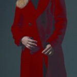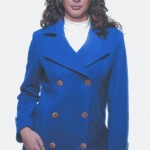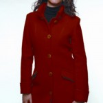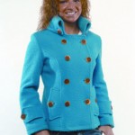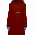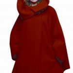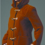 Il cappotto doppiopetto arancio con il tipico ricciolo di lana in rilievo, il collo di volpe, la martingala e la fodera verde smeraldo è un classico prodotto da T.A.C.S., l’azienda di Stia che ha ereditato tutta la tradizione, la storia e le tecniche del sorprendente panno del Casentino.